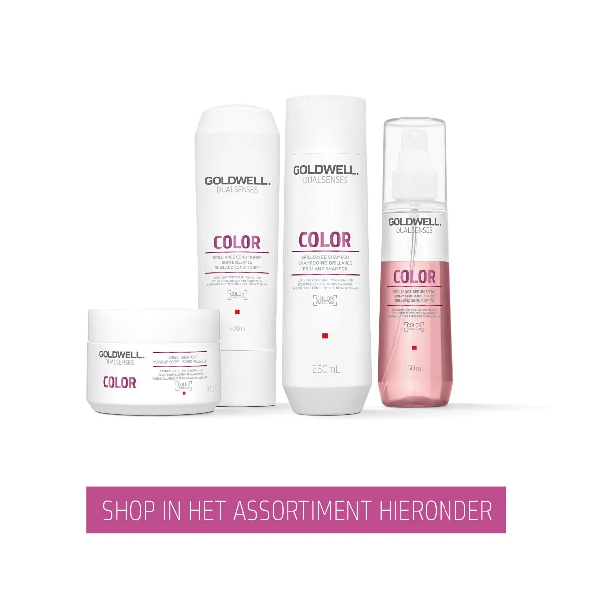 De Goldwell Dualsenses Color Brilliance Serum Spray 150ml biedt direct gewichtloze verzorging en creëert kleurbriljantie voor gekleurd en ongekleurd haar. Inclusief hitteprotectie.
