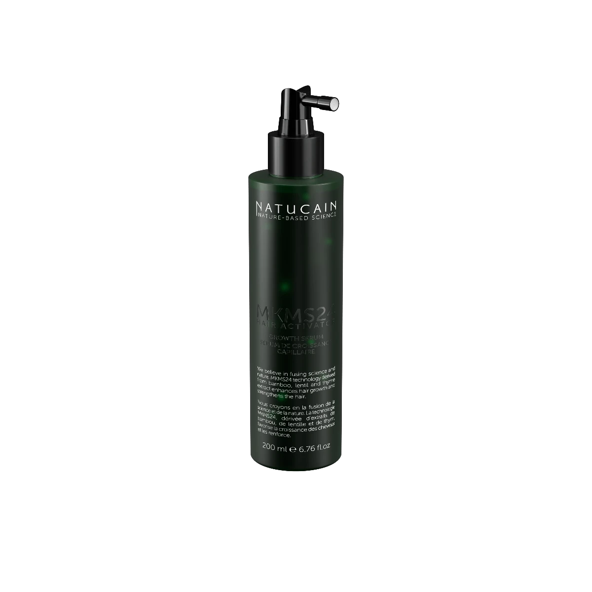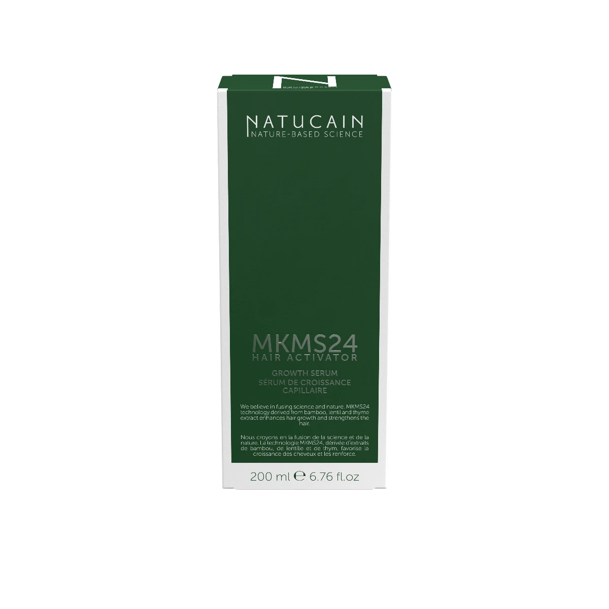 Natucain is 100% natuurlijk. De producten bevatten een unieke combinatie van actieve samenstellingen die voor 100% uit natuurlijke ingrediënten zijn gemaakt en MKMS24 stamcel technologie afkomstig van linzen, bamboe en tijm. MKMS24 zorgt ervoor dat de haarpapil wordt gestimuleerd om de eiwitten FGF7 en noggin te produceren. De noggin eiwit activeert het eiwit BMP4, wat er weer voor zorgt dat de overgang van de haaruitval fase naar de groeifase verkort wordt. Hierdoor worden er dus sneller nieuwe haren ontwikkeld. MKMS24 stimuleert het groeien van het haar direct vanuit de wortel en verlengd de groeifase van het haar, hierdoor worden er voldoende voedingsstoffen gestimuleerd om nieuwe haarzakjes te ontwikkelen.